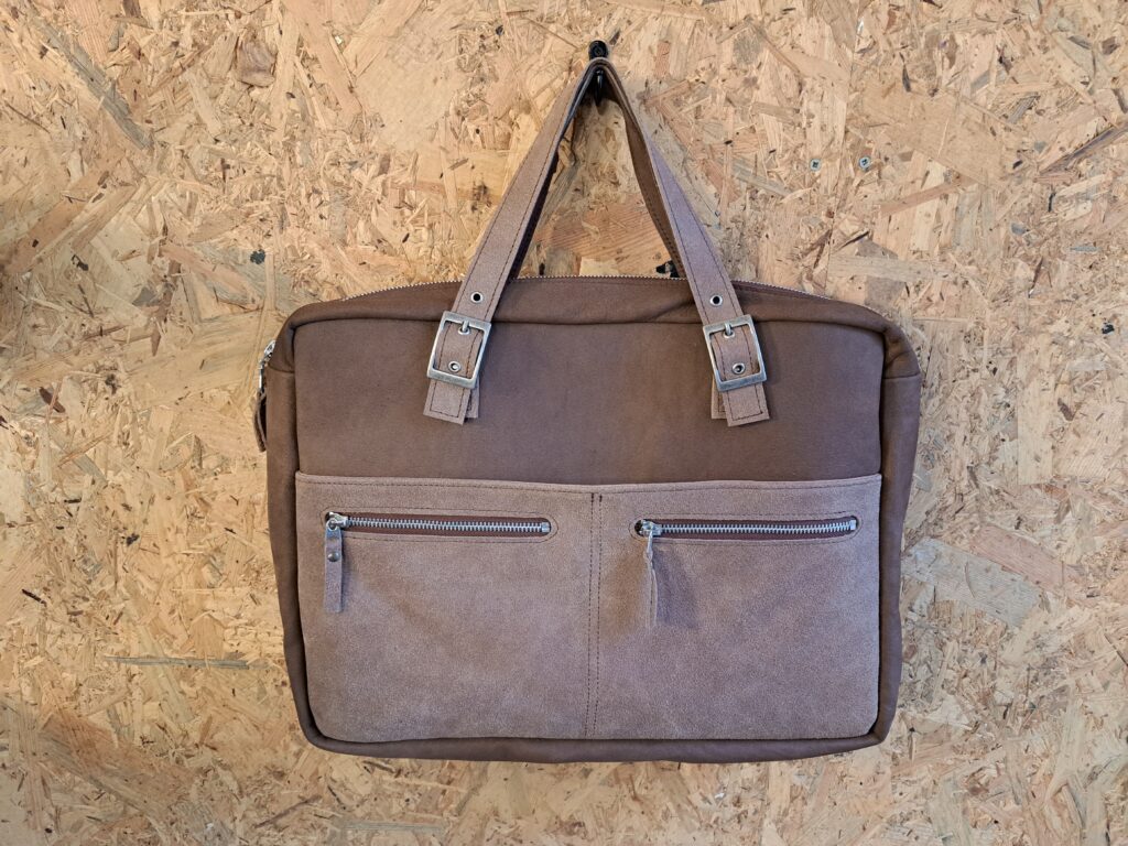 Bij deze opdracht kreeg ik de uitdaging om een tas uit de collectie qua look na te maken in specifieke maten en geschikt als laptoptas. De tas bestaat uit een combinatie van glad en vachtleer van een mooie bruine tint. De binnenkant is voorzien van versteviging en schuim om de laptop te beschermen. Ook was er een wens voor een aantal vakken en een koord om de sleutelbos aan vast te kunnen hangen.